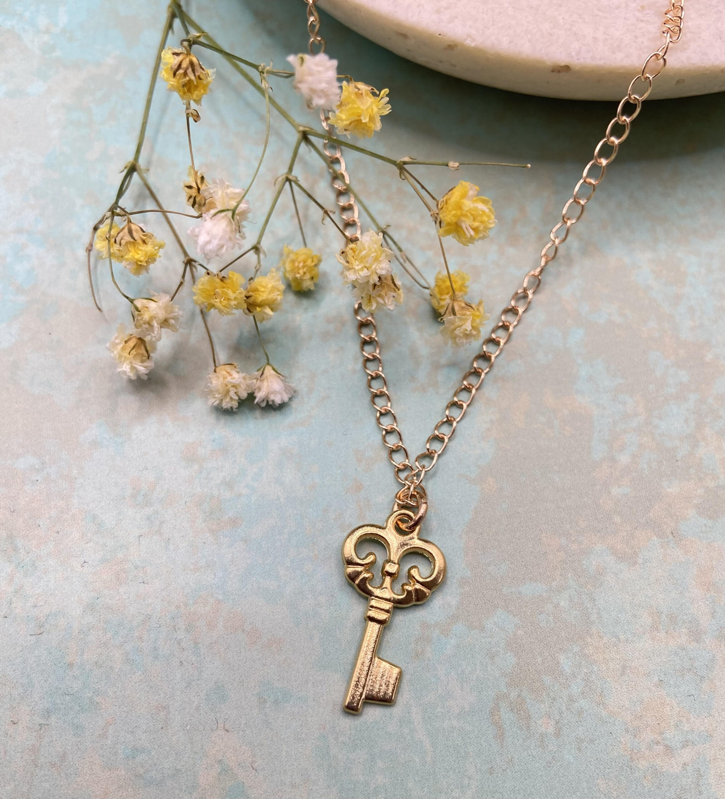 שרשרת בציפוי זהב עם תליון בצורת מפתח – מצופה זהב. עדינה ויפה.